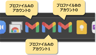 下記のようにDockに3アカウントのショートカットを設置して利用していました。
